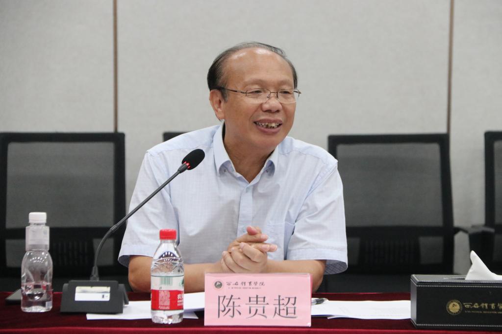 陈贵超对我校的接待表示感谢,他谈到桂林旅游学院将承办2023年第一届全国学生(青年)运动会棒、垒球赛事,此次前来学习取经,希望我校将场馆设施建设、赛事服务等经验不吝赐教、倾囊相授。