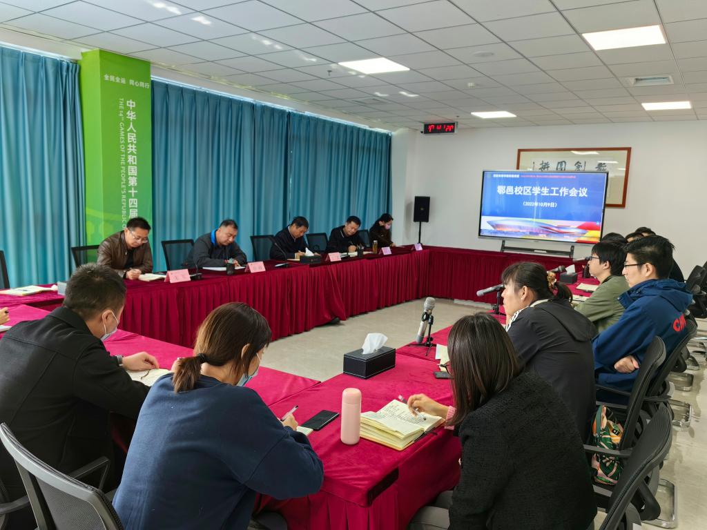 本网讯 10月9日上午,我校在橄榄球馆3楼会议室召开鄠邑校区学生工作会议。校党委副书记文立新出席,鄠邑校区管委会负责人,全体专、兼职辅导员及学工部相关人员参加了此次会议,会议由学工部部长王志刚主持。