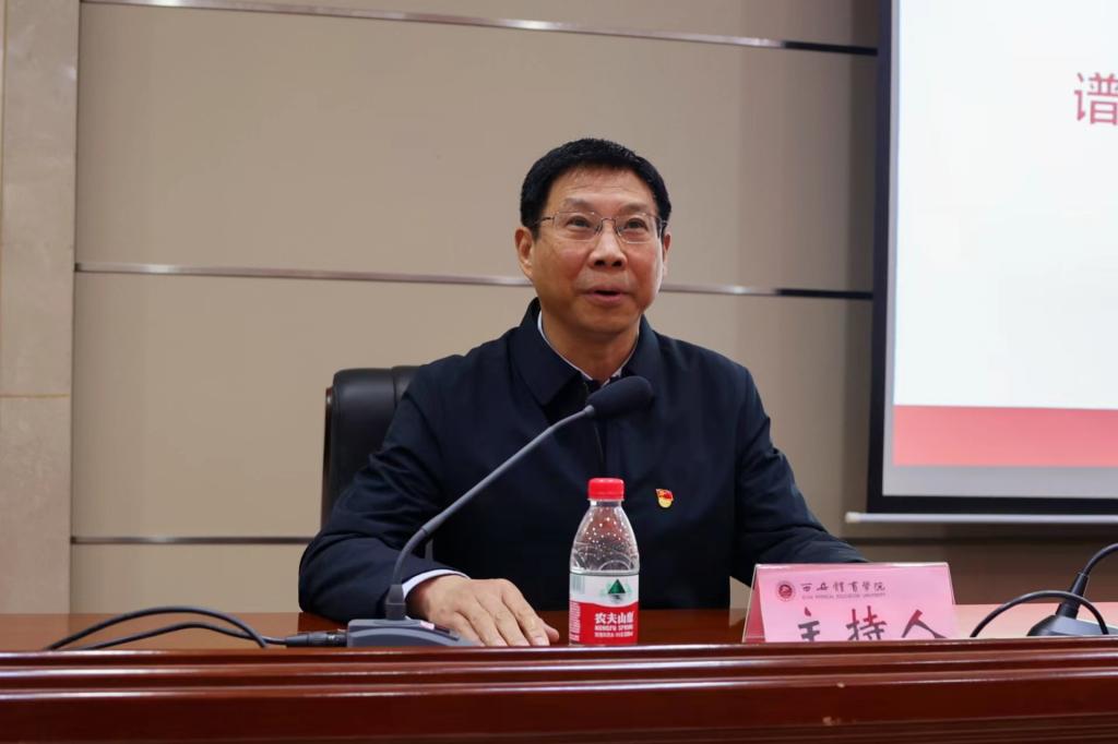 本网讯    为深入学习宣传贯彻党的二十大精神,11月11日下午我校在二号行政楼报告厅举办党的二十大精神宣讲会。党委副书记文立新出席并主持,马克思主义学院院长秋实主讲。全体思政课教师、学工部干部、辅导员、各二级党组织、直属党支部书记参与会议,其他师生通过线上聆听学习。