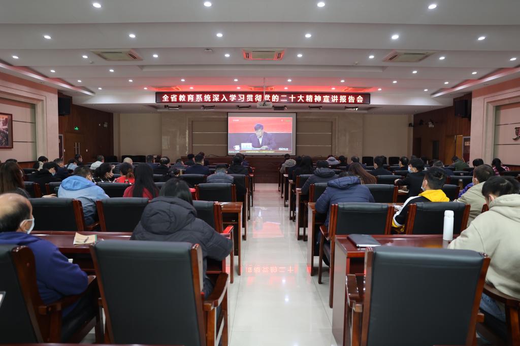 本网讯 11月14日上午,全省教育系统举行学习贯彻党的二十大精神报告会,省委宣讲团成员、省委教育工委书记王建利为全省教育系统广大干部师生作宣讲报告。我校设立分会场,全体校领导、正处级以上干部、思政课教师、辅导员收看了报告直播。
