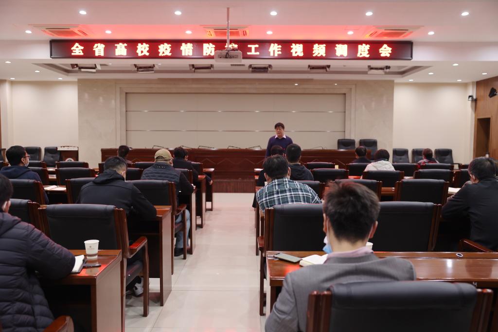 会上,省委教育工委书记王建利通报了全省严峻的疫情形势,并提出四点要求。一要切实担负起疫情防控的政治责任,把工作做在前,切实提高政治站位,强化疫情防控的政治责任;二要严格落实疫情防控的各项措施,把疫情防控细节做到位;三要全力保障师生学习生活需要,全力以赴抓好校园防疫,安心搞好教育教学工作;三要统筹抓好校园安全稳定工作,对校内重点场所进行全面排查,对存在的安全隐患要立即整改,确保万无一失。