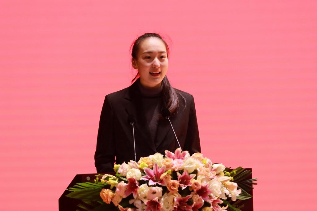2020级舞蹈学专业学生郑楚盈代表在校生表达了对学弟学妹们的欢迎,她表示在西体这个大家庭里,能够开拓新视野,学习新事物,掌握新技能,希望学弟学妹们尽情发挥兴趣爱好和特长,严格要求自己,争做体育精神的传承者、践行者,为体育强国、健康中国建贡献自己的一份力量!