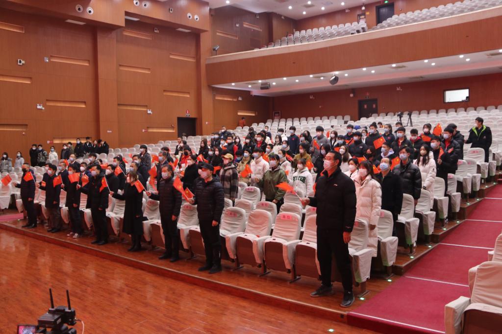 新生代表白嘉文带领新生进行入学宣誓后,开学典礼在全体师生齐唱《没有共产党就没有新中国》的歌声中落下帷幕。