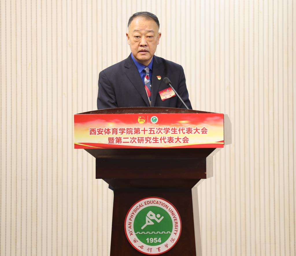 本网讯 12月4日上午,我校第十五次学生代表大会暨第二次研究生代表大会在含光校区隆重召开。校党委书记黄道峻,党委副书记高玉峰,副校长刘新民,党委委员、党委宣传部部长张朝阳,党校办公室主任张军,学工部部长王志刚,校团委书记熊辉以及各二级学院党委书记、团委书记,学代会代表参加本次会议。本次大会采取线上线下相结合的方式召开,主会场设在含光校区教学楼一楼报告厅,两校区共设三个分会场。会议由校团委雷云主持。
