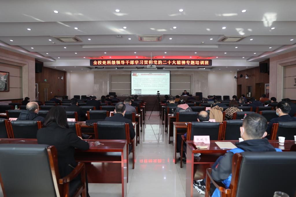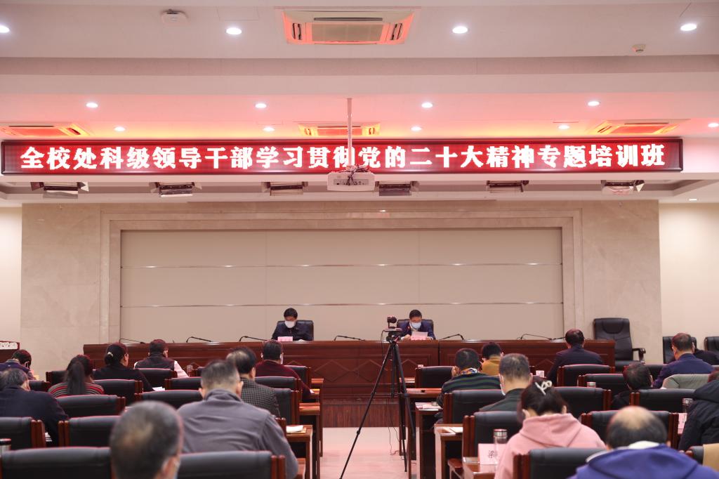 本网讯    12月2日,我校组织开展的处科级领导干部学习贯彻党的二十大精神专题培训班举行结班仪式。全体校领导、处科级干部通过线上线下相结合的方式,参加了结班仪式。