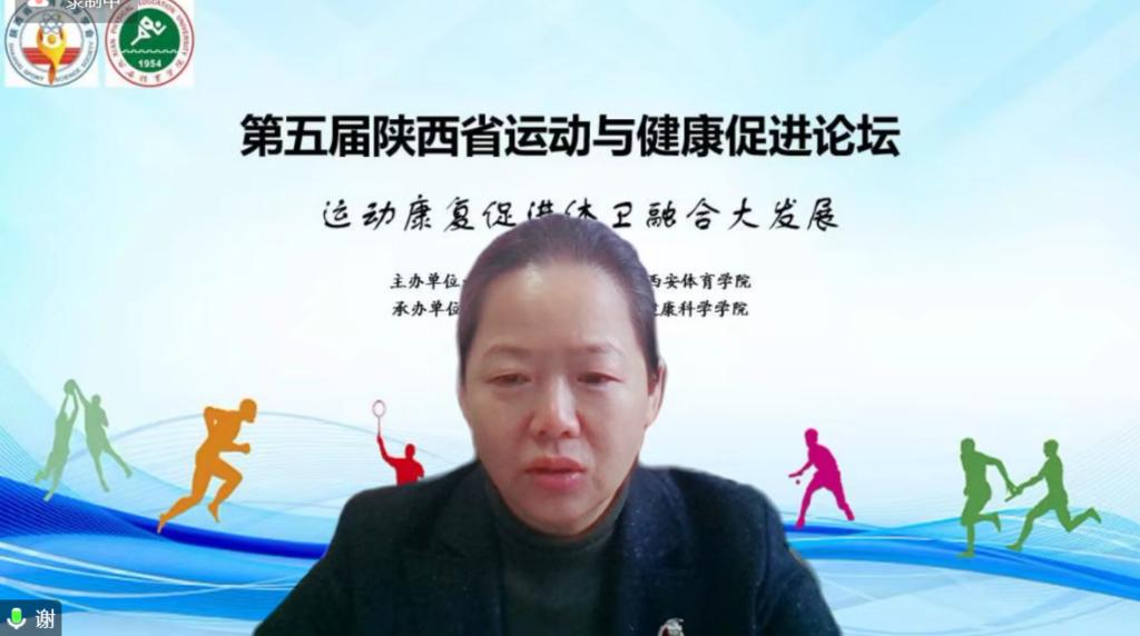 本网讯 在建设体育强国和健康中国的大背景下,为推动我省体育事业高质量发展,助力健康陕西建设,近日,第五届陕西省运动与健康促进论坛在线上成功举办。我校副校长谢英、陕西省体育科学研究所所长高治国、陕西省体育科学学会秘书长赵升、教务处处长张葆欣以及运动与健康科学学院党委书记刘勇、院长刘涛等出席会议。来自陕西师范大学、陕西省康复医院、空军军医大学西京医院、陕西省人民医院、西安市红会医院、陕西中医药大学、陕西省体科所、久久不卡区的11名专家从不同方面、围绕本次会议主题“运动康复促进体卫融合大发展”做了精彩的报告。本次论坛由陕西省体育科学学会和久久不卡区主办,我校运动与健康科学学院承办。