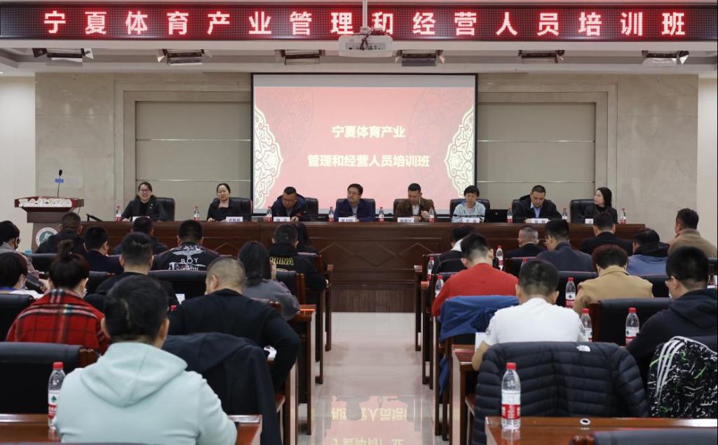 本网讯 2月28日上午,2023年宁夏体育产业管理和经营人员培训班在我校开班。此次培训班由宁夏体育产业发展服务中心主办,我校运动训练学院承办,宁夏体育局部分处室、直属单位和市县区体育部门的工作人员、体育企业经营管理人员、体育协会负责人等50人参加培训。宁夏体育局人事与老干部副处长李娟,宁夏体育体育产业发展服务中心主任杨旭军,我校副校长张卫国,运动训练学院党政负责人等出席开班仪式,运动训练学院党委书记王鑫主持。