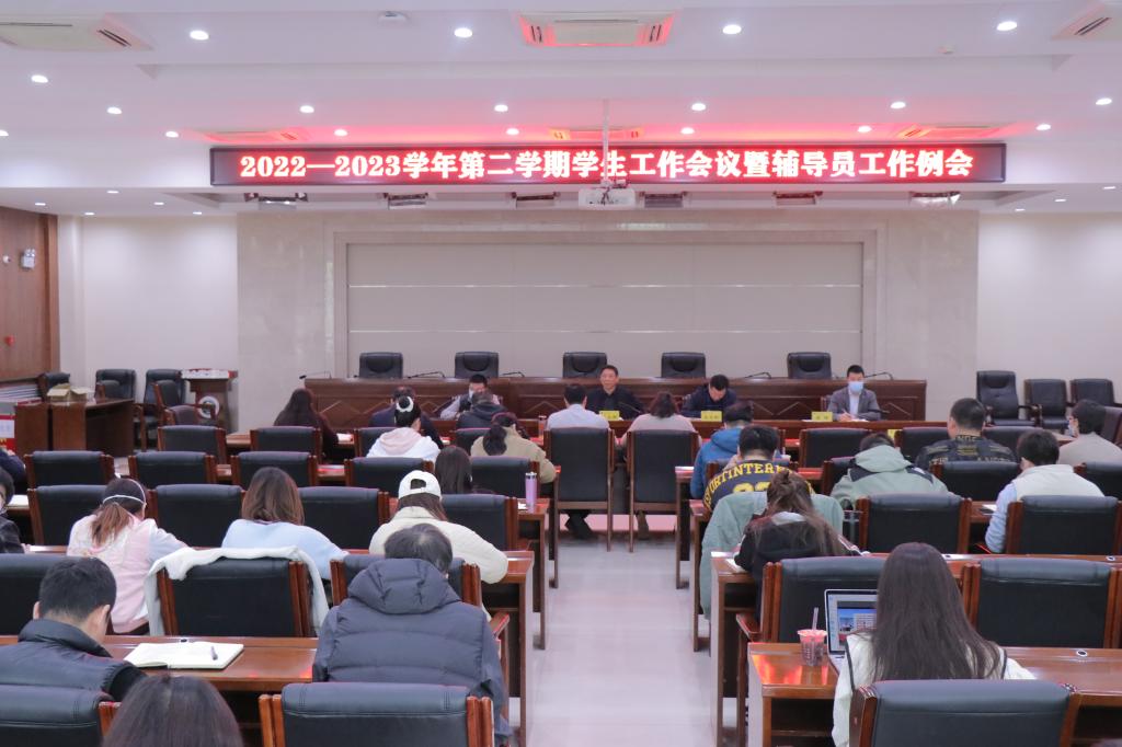 本网讯 3月22日上午9:00,我校在二号行政楼6楼报告厅召开2022-2023学年第二学期学生工作会议暨辅导员工作例会,党委副书记文立新出席会议,各二级学院、研究生部、竞校、鄠邑校区党委(党总支)书记,全体专兼职辅导员及学工部、团委工作人员参加了此次会议,会议由学工部部长王志刚主持。