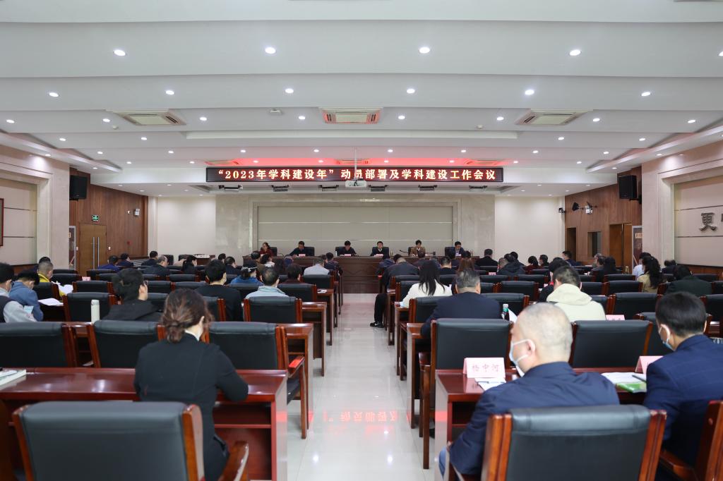 校长刘子实以《坚持学科强校 构筑西体高峰》作了动员讲话。他指出,推进一流学科建设是新时代教育强国的战略命题,是建设特色高水平大学的发展课题,是加快学校高质量发展的奋斗主题。学科建设是一所大学的办学特色和优势的根本所在,它带动着师资、科研和人才培养层次、水平和质量,并直接影响着大学服务社会、引领社会效果的全过程。他强调,打赢学科建设攻坚战,推动学校高质量发展,一要统一思想,凝聚共识,不断强化学科建设龙头地位。学科建设是系统工程,需要理念创新、历史沉淀、师资水平、科研实力、人才培养体系建设等多方布局、协同推进;需要全校上下,从班子成员到一线教职工,从职能部门到二级学院,人人支持、全员参与。各二级学院院长、副院长和学科学术带头人是学科建设管理的主力军,要摸清家底,开放办学;各党组织书记作为党建工作第一责任人,在学科建设中要发挥党的领导和党建工作优势,以一流党建促进一流学科发展;各职能处室、服务保障部门都要围绕学科建设,以有组织政策创新为牵引,加强协同联动,深入走访调研,当好“店小二”,为学科建设发展做好政策指导和服务保障。二要正视不足,加压奋进,持续推动学科建设向好发展。知不足而后进,望山远而力行。学校现在发展面临着办学层次亟待提高、体育学学科建设整体水平不高、学科团队建设存在明显短板、学科建设管理机制不够健全等不足,要求我们必须解放思想,大胆进取,真正把高质量发展作为第一要务,以创业的精气神对标对表,奋起直追,背水一战,走出一条一流大学一流学科建设新路。三要提振精神,精准发力,坚决打赢学科建设攻坚战。作为一所体育高等院校,要坚持以体为魂,优化学科专业布局。紧紧抓住博士点申报契机,以体育学一流学科和其他优势学科为核心,优化人才培养专业结构,“固底板,补短板、扬优势”,统筹推进各项工作高效推进,带动相关学科及交叉学科领域的全面协调发展。要强化人才兴校,培育高层次人才队伍。加大人才引进引智工作力度,加快建设人才高地,打出人才建设“组合拳”,实现领军人才全面突破,为学校高质量内涵式发展提供坚强人才支撑。要实施“平台+带头人+团队+成果”,产出更多标志性成果。有组织有重点地打造大平台,集成攻关,力争拿大项目、出大成果,同时,要大力提升科技成果转化水平,以高质量成果检验学科建设与发展成效、发展潜力。扩大开放交流,开启高阶性合作办学及项目。坚持开放办学,积极推进科教结合产教融合、省队校办和高水平智慧化训练基地建设,扩大师生出国(境)交流学习规模和层次,推进干部教师挂职工作,做强做优“丝绸之路体育教育联盟”高端合作与交流平台,加快校友会、基金会及有关智库建设,助力学科建设发展。要优化学科管理体系,推进体制创新。优化学科管理体制、学科组织架构、学科团队建设、人才培养模式、国际合作等,以学科创新带动学校整体加大改革力度、加快改革步伐。