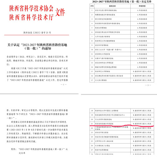 本网讯    近日,陕西省科学技术协会、陕西省科学技术厅公布了“2023-2027年陕西省科普教育基地(第一批)”名单,陕西省体医融合科普教育基地入选。