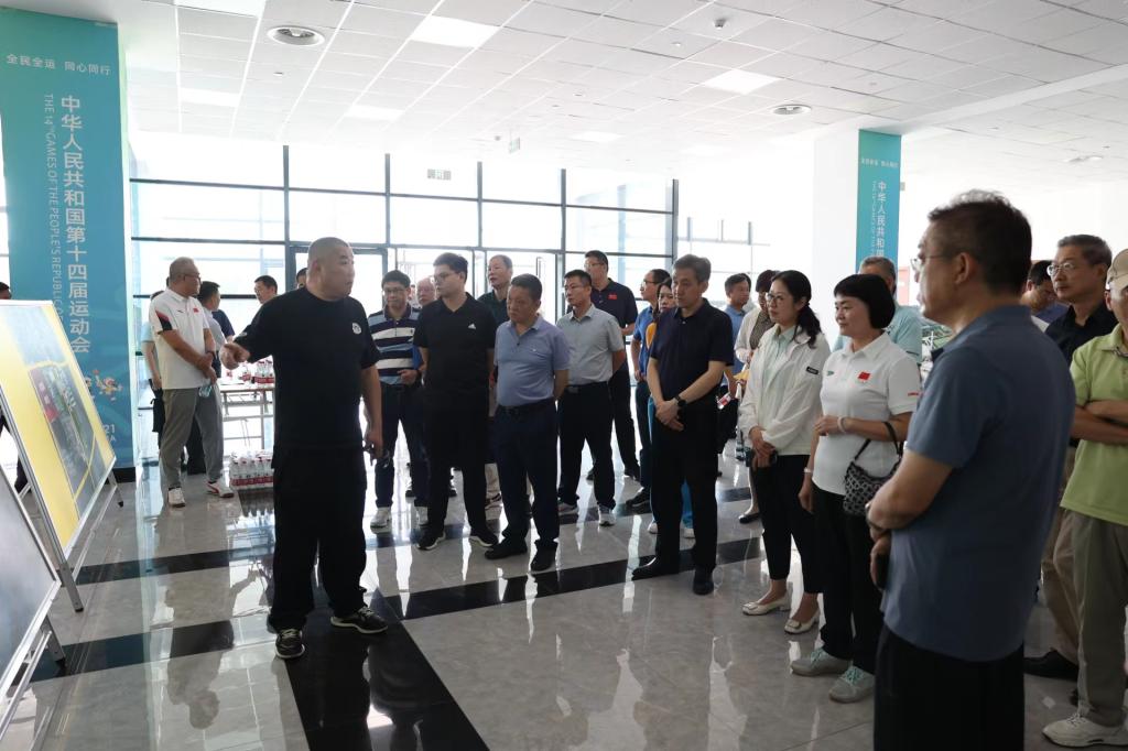本网讯 8月3日上午,第十五届全运会广东赛区执委会副主席、广东省体育局局长崔剑带队,执委会一行三十二人来我校鄠邑校区参观调研。陕西省体育局副局长张王平、陕西省体育局二级巡视员郭文陪同参观,我校党委副书记高玉峰及相关部门负责人热情接待。