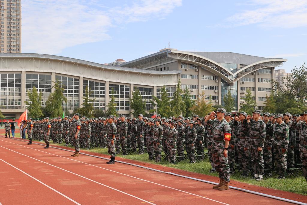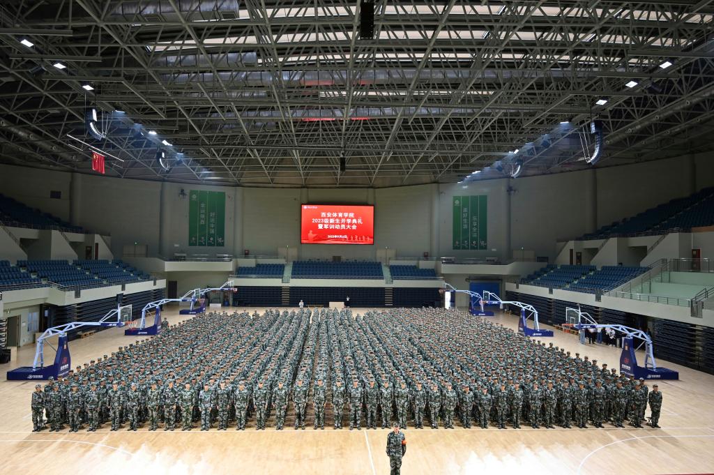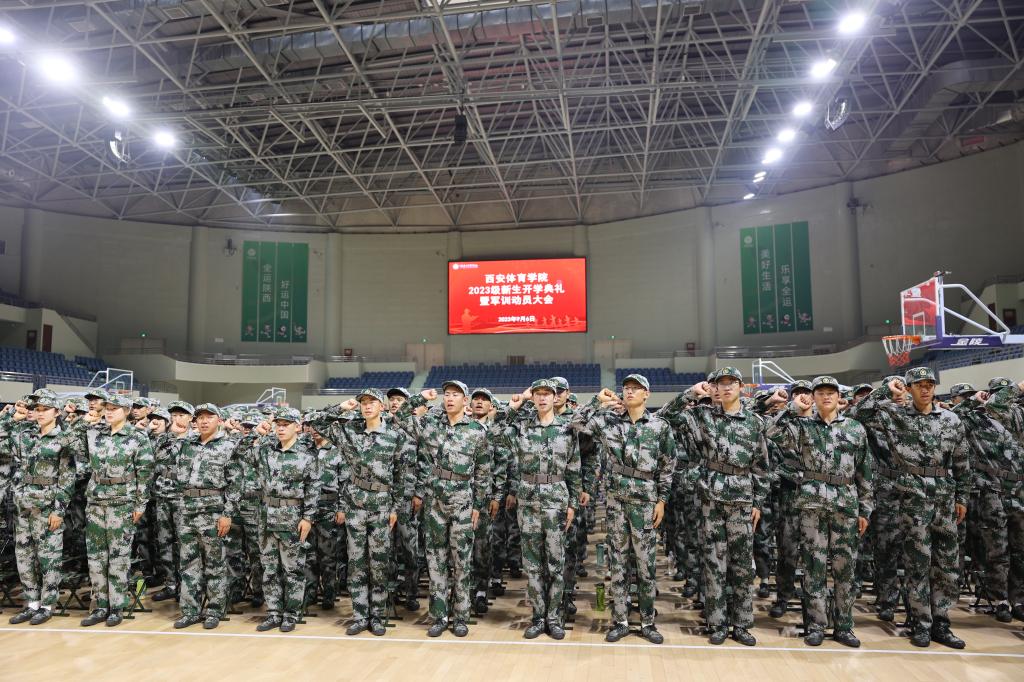本网讯 9月6日,我校2023级新生开学典礼暨军训动员大会分别在含光校区第一田径场和鄠邑校区手球馆隆重举行。全体校领导出席,相关职能部门负责人及教师代表、军训教官代表和2023级新生辅导员、全体新生参加典礼。党委副书记杨芳乾和高玉峰分别在含光、鄠邑校区主持大会。