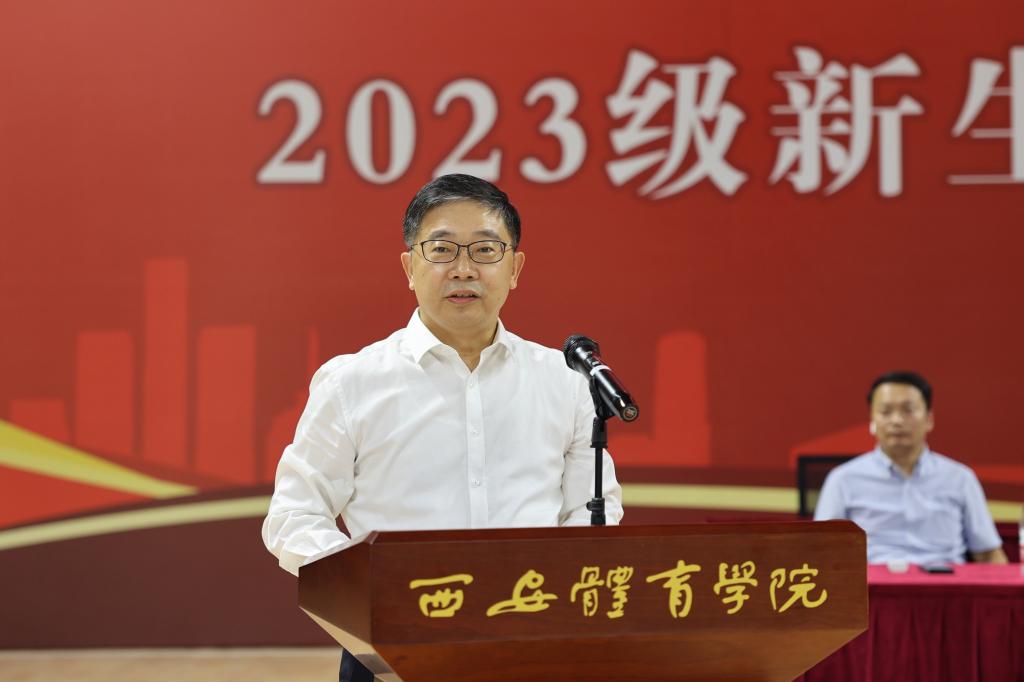 2023级新生代表杜柯瑶、黄安齐在发言中表示,全体新生要勇敢肩负起时代赋予的责任,传承“严谨创新,团结拼搏”的西体校训,胸怀理想,志存高远,珍惜韶华,勇毅创新,在奋斗中释放青春激情、追逐青春理想,以时间和行动,逐步接近理想和目标。