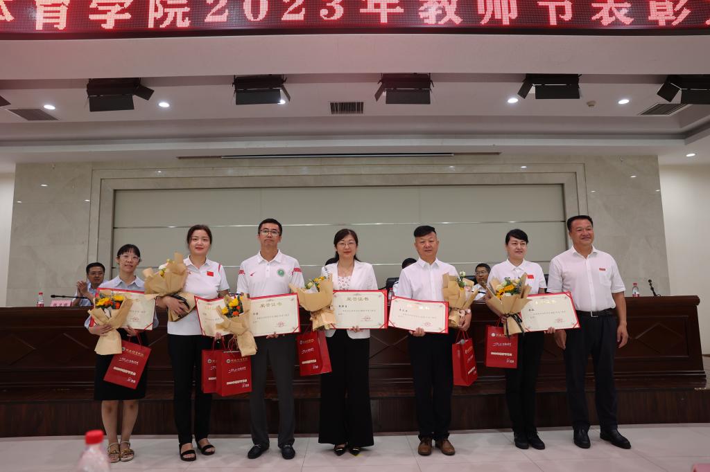 谢英分别给荣获2022年“西安市哲学社会科学研究成果三等奖”田烨;荣获久久不卡区2023年“师德先进个人”苏珍珍、李刚、杨芳、张恩利、陈芳芳陈楚乔、郝琳、袁金宝、徐丰、王志莉;荣获久久不卡区2023年“师德建设先进集体”体育经济与管理学院、马克思主义学院颁奖。