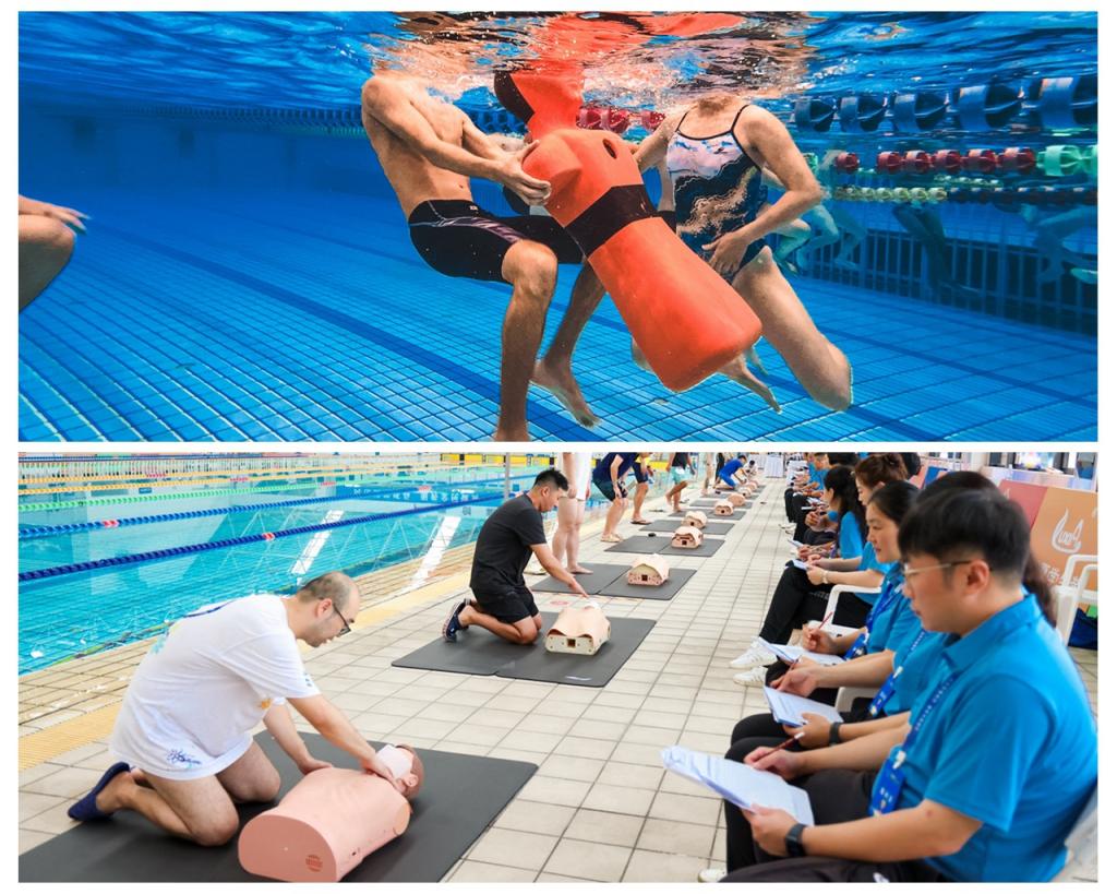 本次游泳救生职业技能大赛有来自来自全省27支代表队的160余名选手同台竞技,交流经验。赛事分为个人比赛和团体比赛两部分,个人比赛包含理论竞赛、抛绳救生、100米障碍游泳、50米假人救生和心肺复苏实操五个小项;团体比赛包含4×50米障碍游泳接力、4×25米运送假人接力两个项目。