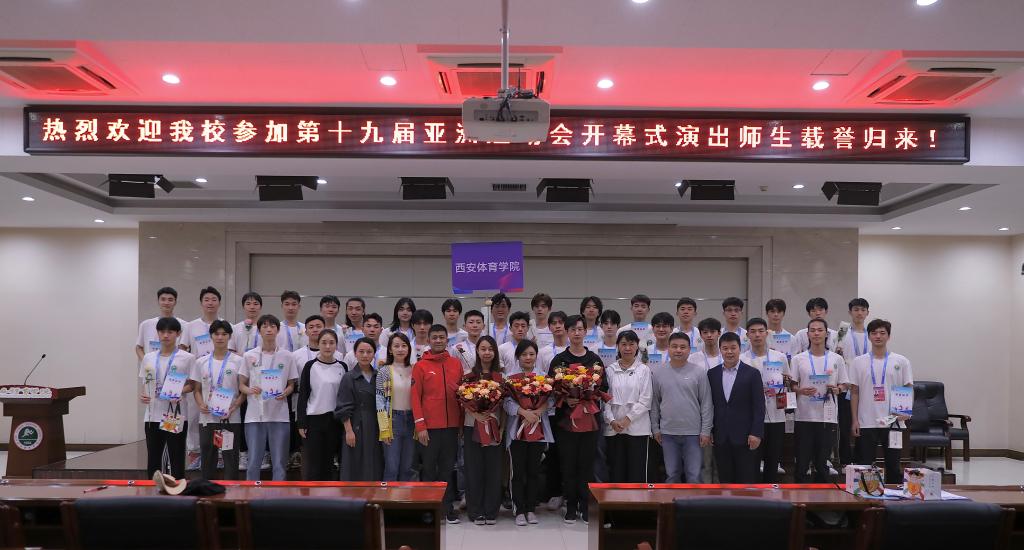 9月24日晚,为迎接参演第十九届杭州亚运会演出的师生团队载誉归来,学校在二号办公楼六楼报告厅举行隆重的欢迎仪式,校党委委员、党委宣传(统战)部部长张朝阳,校办公室主任张军,艺术学院院长杨占军、党委书记丁雪艳、副院长刘强参加欢迎仪式,欢迎仪式由校团委书记熊辉主持。