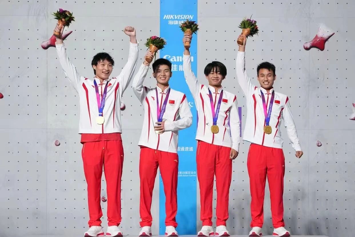 在10月4日举行的男子攀岩团体速度接力决赛中与队友击败印度尼西亚队获得冠军