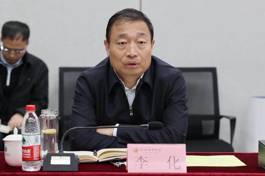 本网讯 11月14日,鄠邑区委领导班子与我校党委领导班子成员汇聚在我校鄠邑校区手球馆,就科技成果转化助力区域经济发展和鄠邑校区二期项目建设推进工作进行深入交流探讨。鄠邑区委书记李化,副区长郑伟、吴宁超,我校党委书记刘子实、校长李富生、副校长谢英出席座谈会。会议由李富生主持。