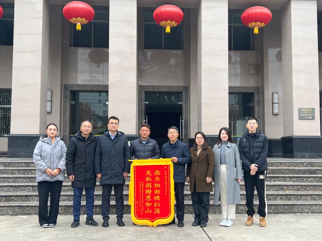 日土县日松乡小学教师代表平措桑珠(左四)为我校赠送锦旗