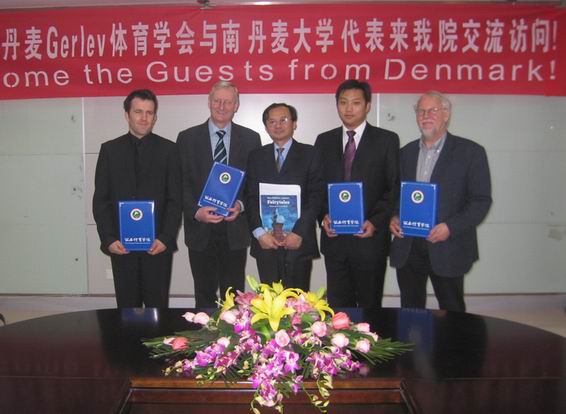 3月12日,丹麦Gerlev体育学会会长费恩•博根先生与南丹麦大学约翰•汉森博士等一行四人来我院交流访问。该代表团此次来访主要希望促进两校间的相互了解,并商谈双方可能开展的有关学术交流与合作项目。上午十点,访问代表在我院国际交流中心主任雷强教授的陪同下参观了校园及实验室,对我院的教学设施与科研实力表示赞许。参观结束会后,双方在我院国际交流中心大会议室进行了友好会谈。双方就有关开展合作研究、组织我院在校生赴欧洲开展体育游学及安排丹麦学生来我院进修武术等合作项目进行了商谈。会谈结束后双方合影留念并相互赠送了纪念品。