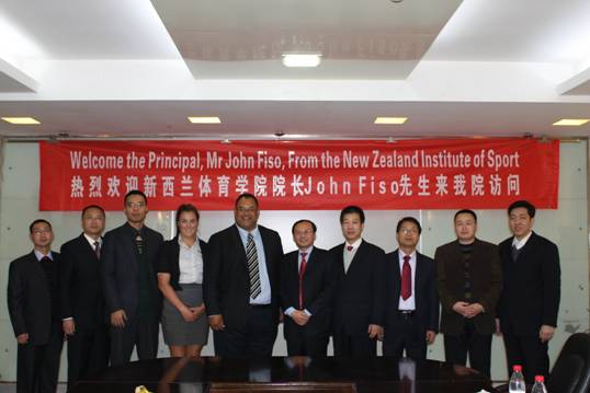 2012年2月24日,新西兰体育学院院长John Fiso先生一行来我院进行校际友好访问。双方就有关人才培养、师资校际交流,以及学生短期课程学习等事宜进行了商谈,对今明两年的合作项目与步骤达成了一致意向。