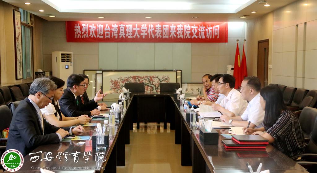 朱元利对蔡维民一行人的来访表示热烈欢迎,随后他介绍了我院的发展概况、专业建设、人才培养等方面情况,并从运动与健康促进、体育经济与管理、体育法治理论与实践、体育教育理论与实践研究和医体整合五个方面,向台湾真理大学的同仁们阐述了我院近期教育教学研究的发展方向。蔡维民对朱元利的热情欢迎表示感谢,同时介绍了台湾真理大学的基本情况和近期的发展情况,希望与我院从学生短期交流项目、寒暑假交流项目及教师互访交流项目三个方面着手合作。之后陈天赐、郑俊杰分别介绍了真理大学的相关教学科研情况。