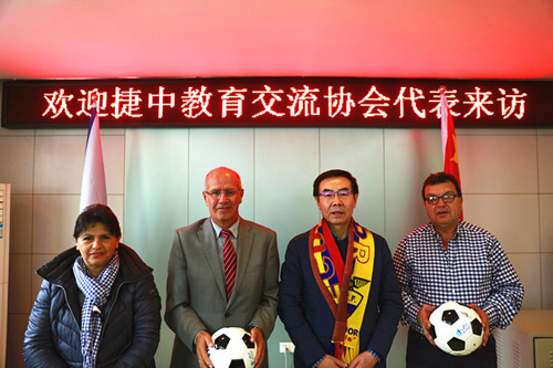 2019年12月16日上午,捷中教育交流协会理事长胡莉娜及国际足联代表Manuel Amilcar Mantilla Valencia、顾问Alfredo Encalada等一行9人来我校访问交流,国际交流中心主任朱军、足球学院教研室副主任马俊及两部门相关人员一同出席会见。