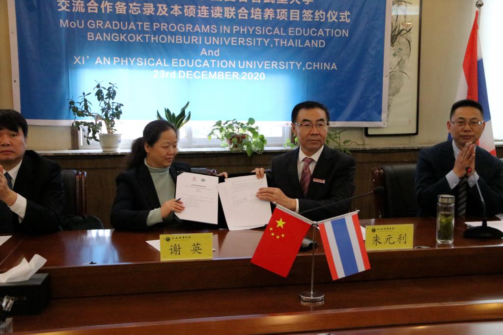 12月23日上午,我校和泰国曼谷吞武里大学举行了两校合作备忘录和“本硕连读联合项目”合作协议远程视频签署仪式。