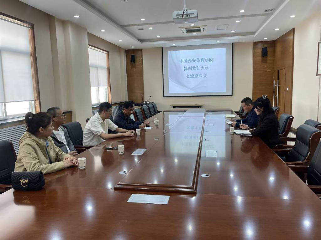 韩国龙仁大学在体育教育方面有着独特的优势和丰富的经验。跆拳道与高尔夫作为该校的优势项目,学校教师及学生共获得多块奥运奖牌。此次来访,双方就体育专业人才培养、学科建设、国际交流合作等方面进行了深入的交流与探讨。