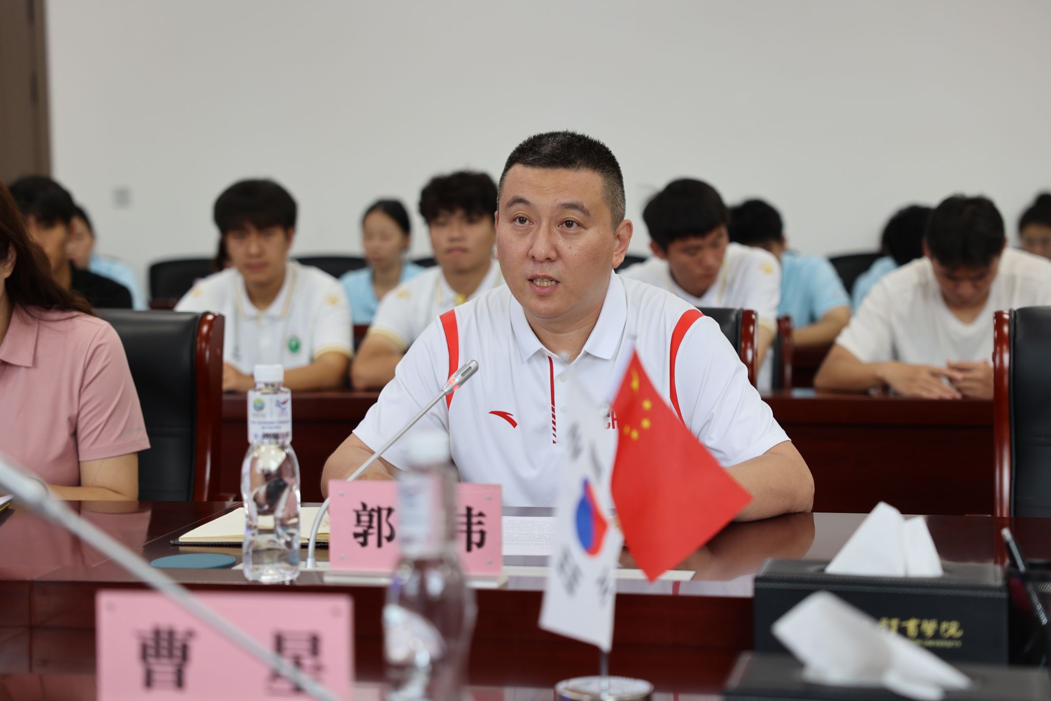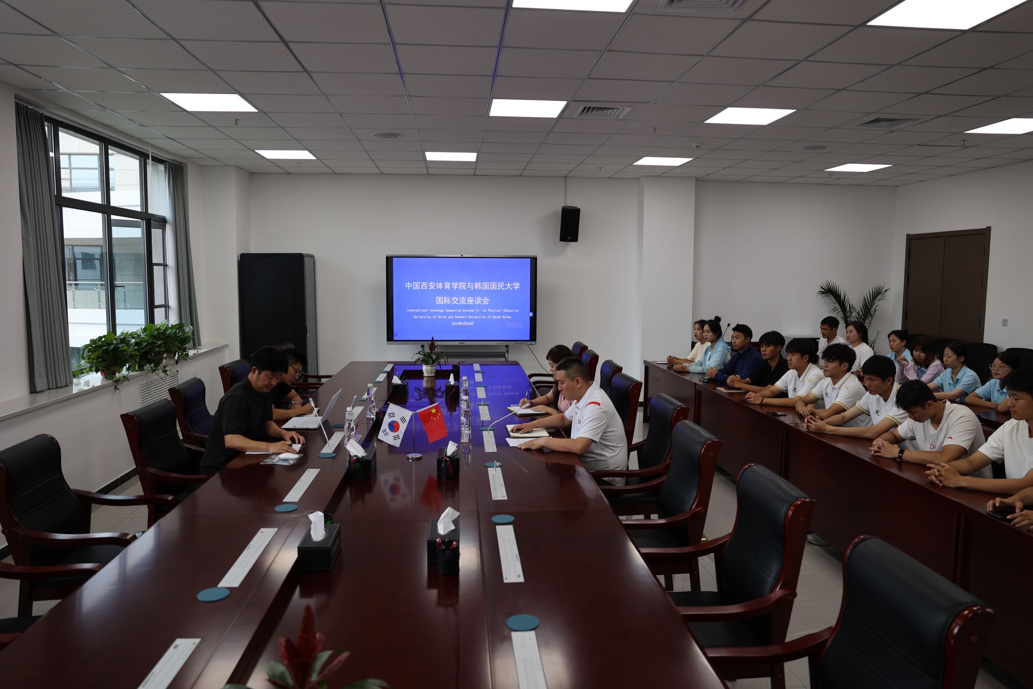 6月30日,韩国国民大学体育学院副院长曹星教授、体育产业研究生院张昱舸老师一行莅临我校,双方就学校建设与未来合作方向展开交流,围绕学校概况、学科建设、专业特色、学生培养、教师发展等核心议题进行了充分研讨。此次活动旨在搭建校际合作桥梁,推动教育资源共享与协同发展,也为后续深化合作奠定坚实基础。