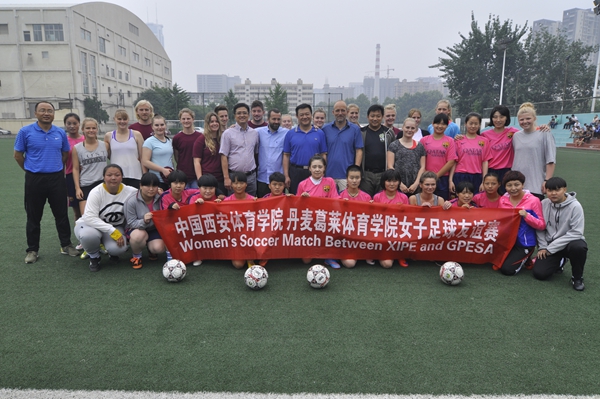丹麦葛莱体育与运动学院学生在我院教师的带领下学习了极具地方特色的陕北腰鼓舞蹈以及傣族舞蹈,我院师生娴熟的舞姿向来自丹麦的同学们传递了浓厚的中国传统文化,在与丹麦的同学共同练习舞蹈之后结下了深厚的友谊。下午,我院副院长陈彦陪同LARS副校长一同观看了两校学生进行了女子七人制足球友谊赛,比赛气氛热烈,球员在场上表现活跃,双方队员共展球技,博得了观赛师生们的阵阵喝彩。