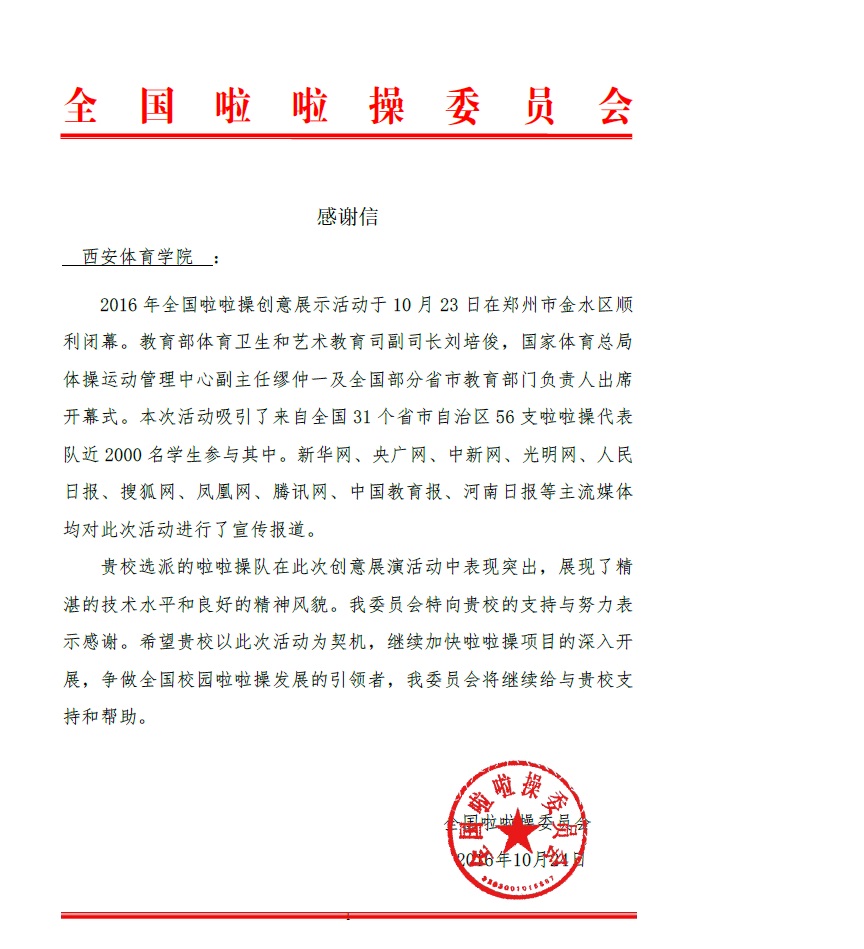 全国啦啦操委员会给我院的感谢信-竞训处,久久不卡区