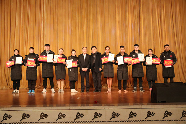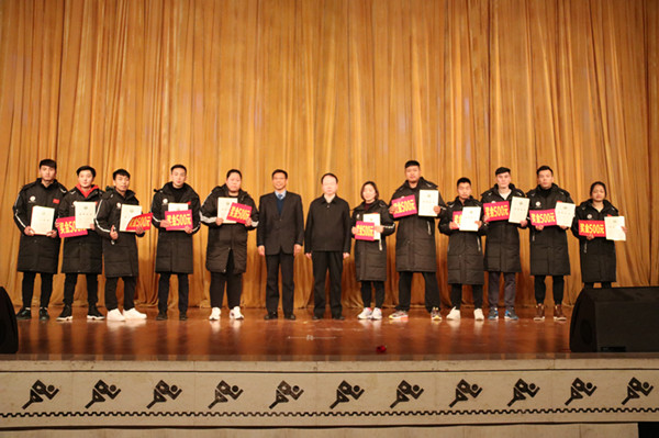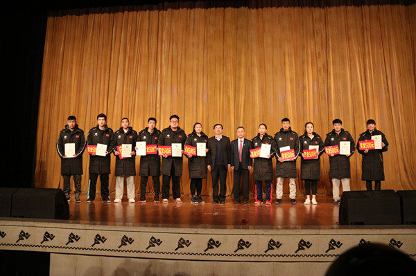 党委副书记朱元利同志主持晚会,并总结2016年我院竞赛训练工作。2016年,我院充分依托体育学科优势,坚持“以赛带教,以赛带训,以赛带学,促进教学相长,学训结合”的方针,全力推进竞赛训练工作实现快速发展,圆满完成了各项竞赛训练任务。