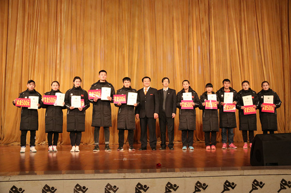 副院长文立新、党委副书记王跃生为获得2016年度“奥林匹克之星”的同学们颁奖