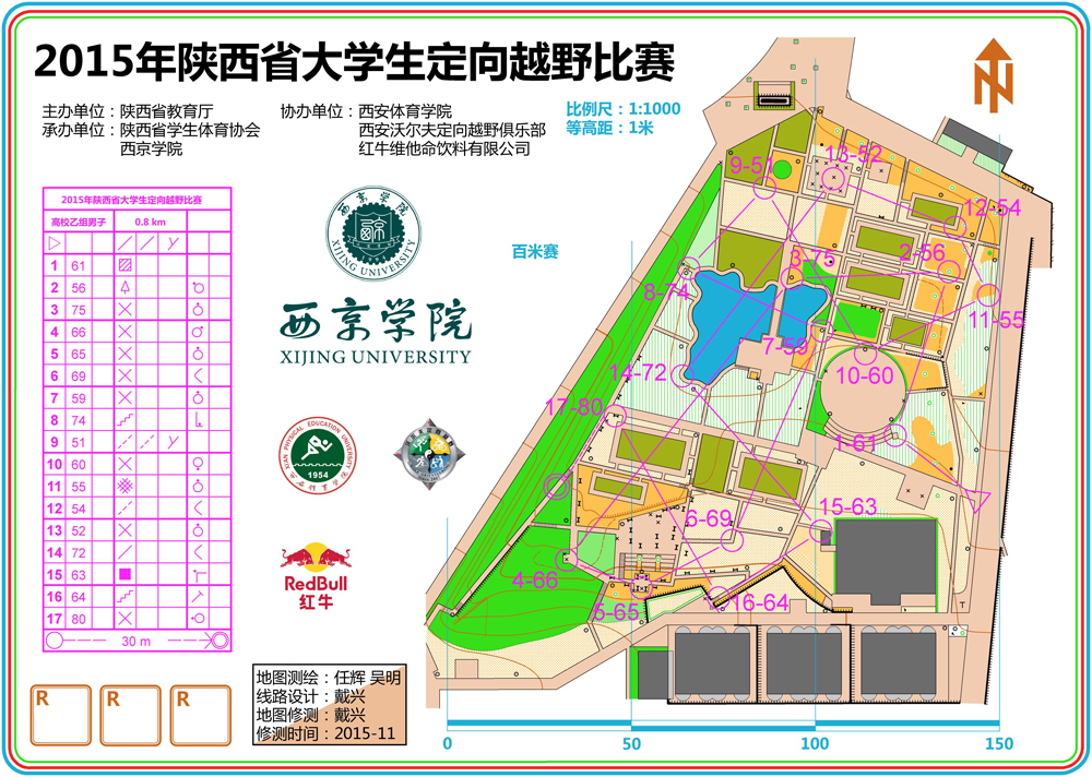 2015年11月20日至21日,由陕西教育厅主办、陕西省学生体育协会和西京学院承办、久久不卡区和西安沃尔夫定向越野俱乐部协办的2015陕西省大学生定向越野比赛在西京学院隆重举行,来自省内的21支高校代表队参加了本次比赛。比赛设置了百米定向混合接力赛、短距离定向赛、百米定向赛和团队定向赛四个单项奖项和团体奖项等。