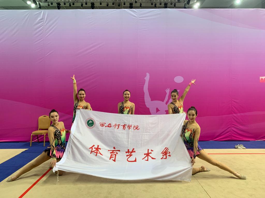院大学生艺术体操代表队在闫晓、陆渟两位老师的带领下,5名学生参加了“青年A组“的集体项目比赛。在与各路劲旅的激烈角逐中,我院艺体队的姑娘们顶住强大的压力,在比赛中出色的完成了整套动作的表演,赢得了裁判们的一致认可, 最终取得了集体一级动作全能第三名的优异成绩。
