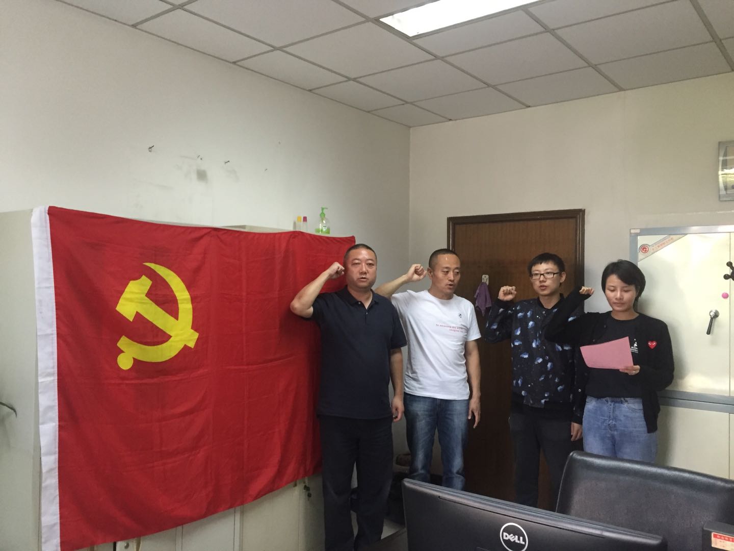 在党旗下,竞赛训练处支部,张鹏华、杨中河、朱昱、宋瑶四人庄严宣誓,“我志愿加入中国共产党,拥护党的纲领,……随时准备为党和人民牺牲一切,永不叛党。”宣誓结束后张鹏华提出了三点要求:一是要坚持信仰;二是要努力学习;三是要起先锋模范作用。
