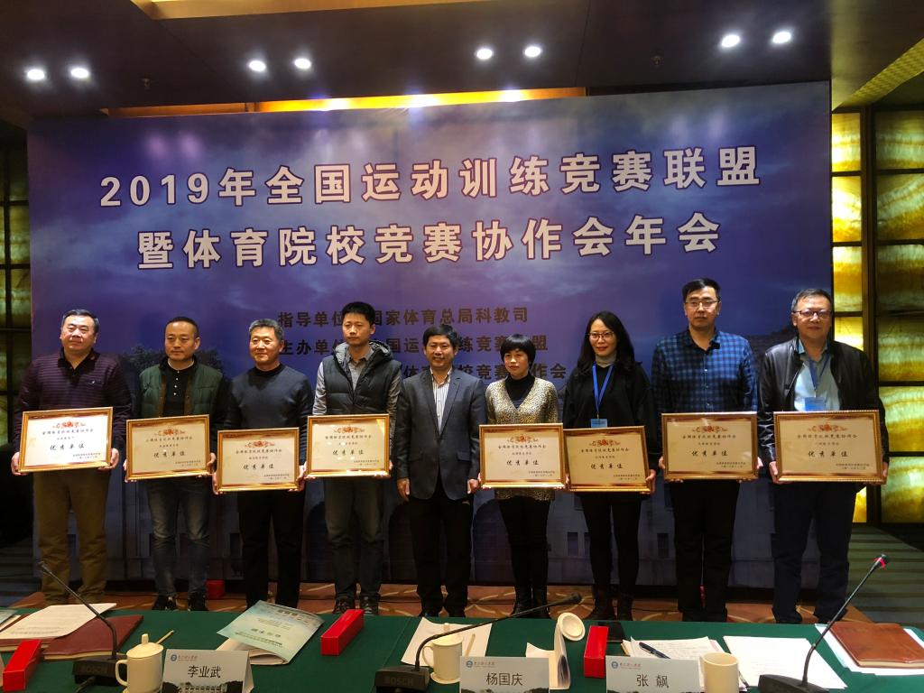 会议上国家体育总局科教司二级调研员罗建彬宣读了全国体育院校竞赛协作会关于2016-2019周期先进集体、先进个人表彰决定,我校获评“优秀单位”称号,张鹏华、朱昱获评“先进个人”。国家体育总局科教司司长李业武为获奖单位进行了颁奖。