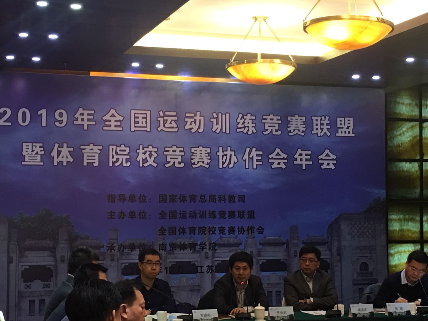 为了进一步提高全国运动训练竞赛联盟和全国体育院校竞赛协作会赛事质量和人才培养能力,总结2019年各项竞赛工作的经验,研究协作会2020-2023周期工作目标和工作计划, 12月13日-15日由国家体育总局科教司指导,全国运动训练竞赛联盟、全国体育院校竞赛协作会主办,南京体育学院承办的2019年全国运动训练竞赛联盟暨体育院校竞赛协作会年会在南京召开。
