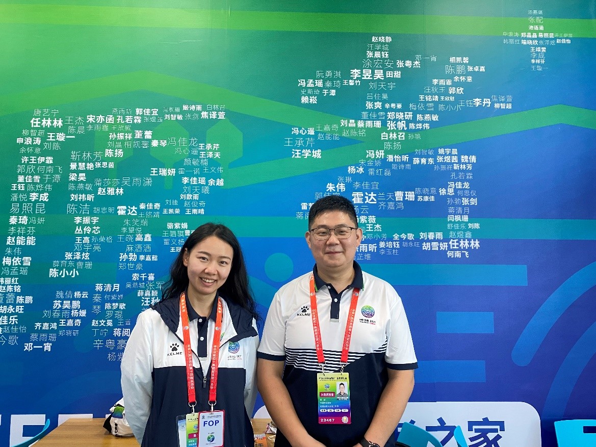 经管学院党总支书记马迅担任媒体新闻处的媒体混采区主管,主要负责新闻媒体采访运动员等工作。郭轶群老师在体操竞委会负责颁奖礼仪工作,为体操颁奖环节顺利进行贡献一份力量。