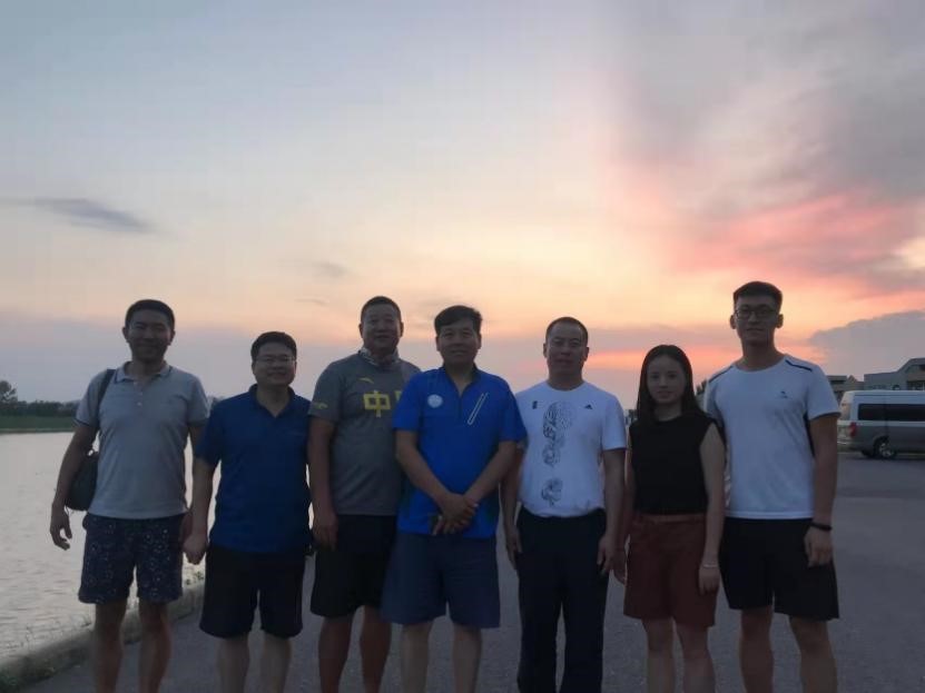 攻关课题成员科研服务时在辽宁省皮划艇训练基地和皮划艇领队和教练在一起