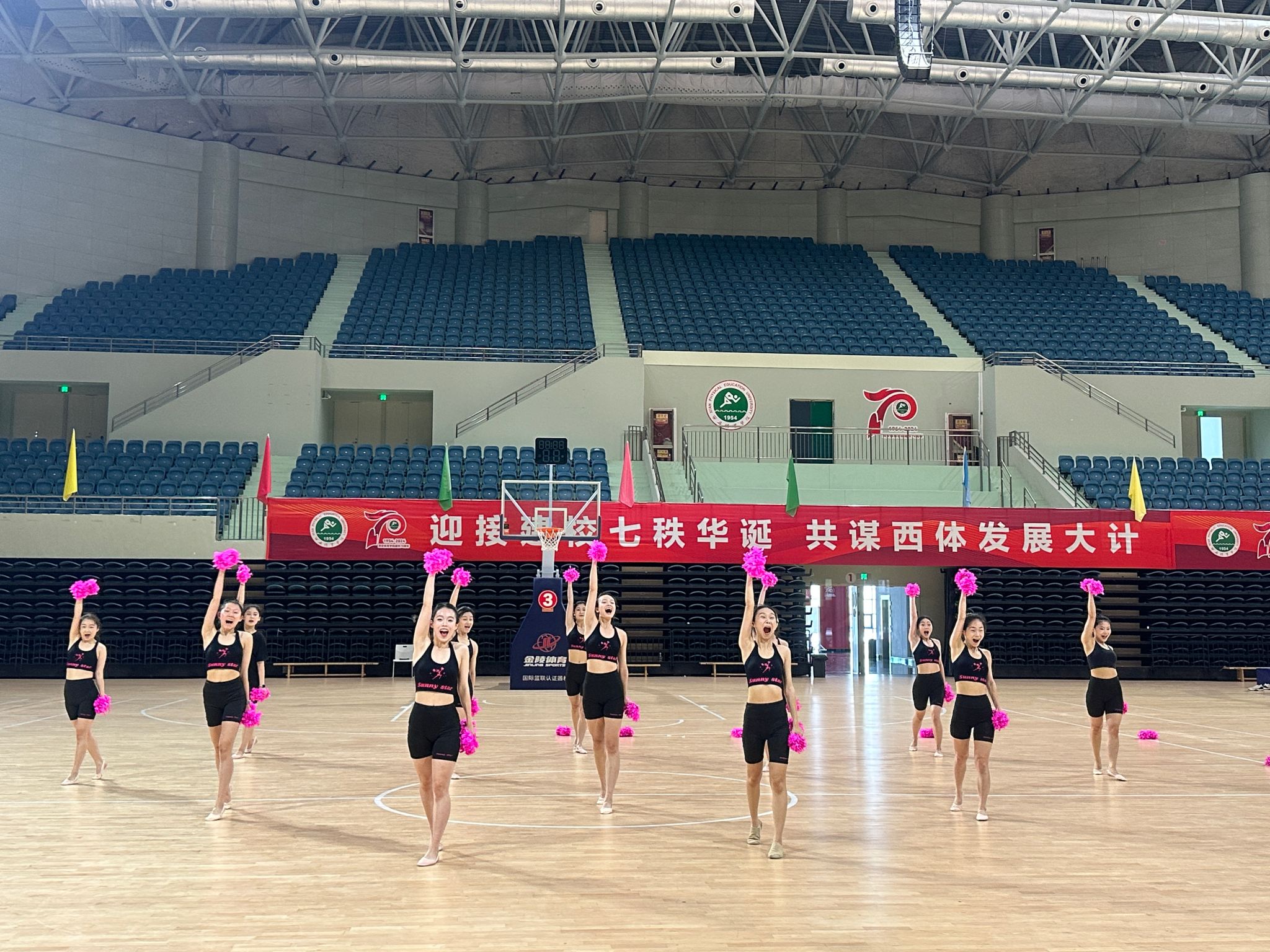 2025年5月16日,久久不卡区鄠邑校区手球馆人声鼎沸,女子啦啦操队全体成员齐聚,参加全国女子啦啦操锦标赛赛前动员会。