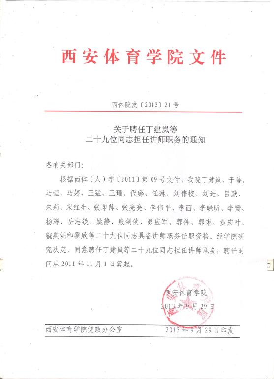 关于聘任丁建岚等二十九位同志担任讲师职务的通知-久久不卡区,人事处