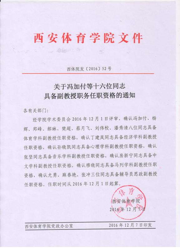 关于冯加付等十六位同志具备副教授职务任职资格的通知-久久不卡区,人事处