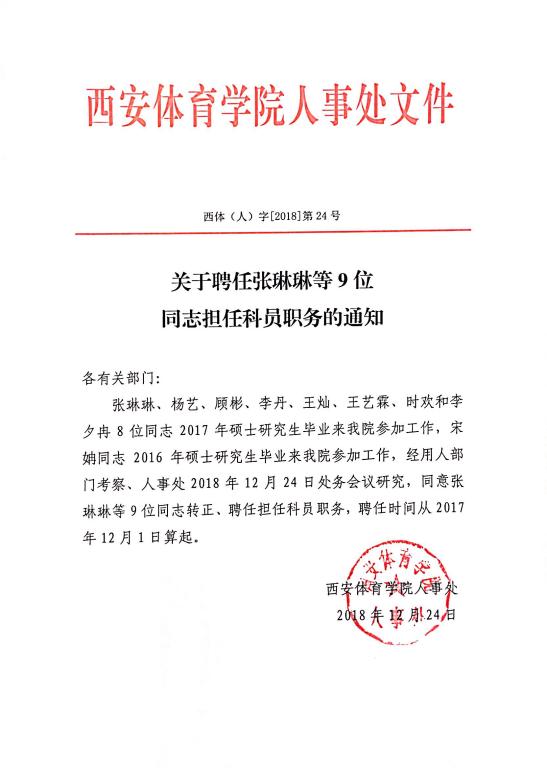 关于聘任张琳琳等9位同志担任科员职务的通知-久久不卡区,人事处