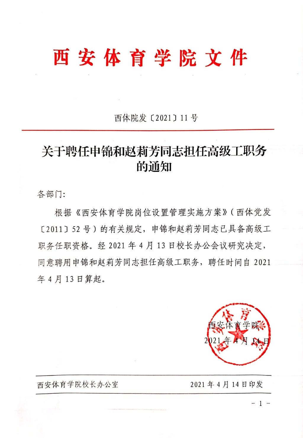 关于聘任申锦和赵莉芳同志担任高级工职务的通知-久久不卡区,人事处