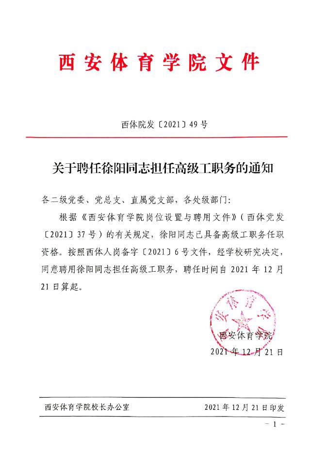 关于聘任徐阳同志担任高级工职务的通知-久久不卡区,人事处
