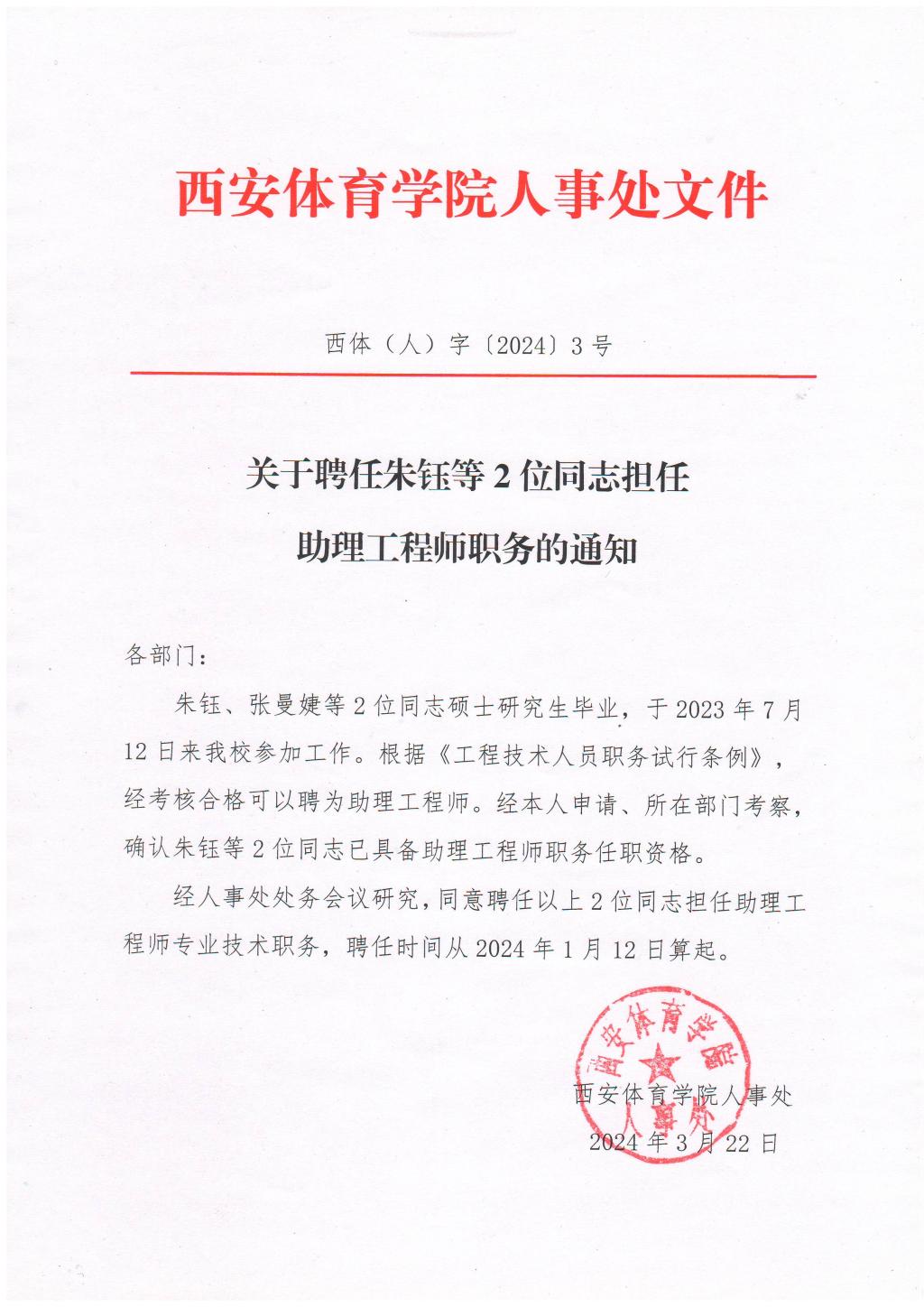 关于聘任朱钰等2位同志担任助理工程师职务的通知-久久不卡区,人事处