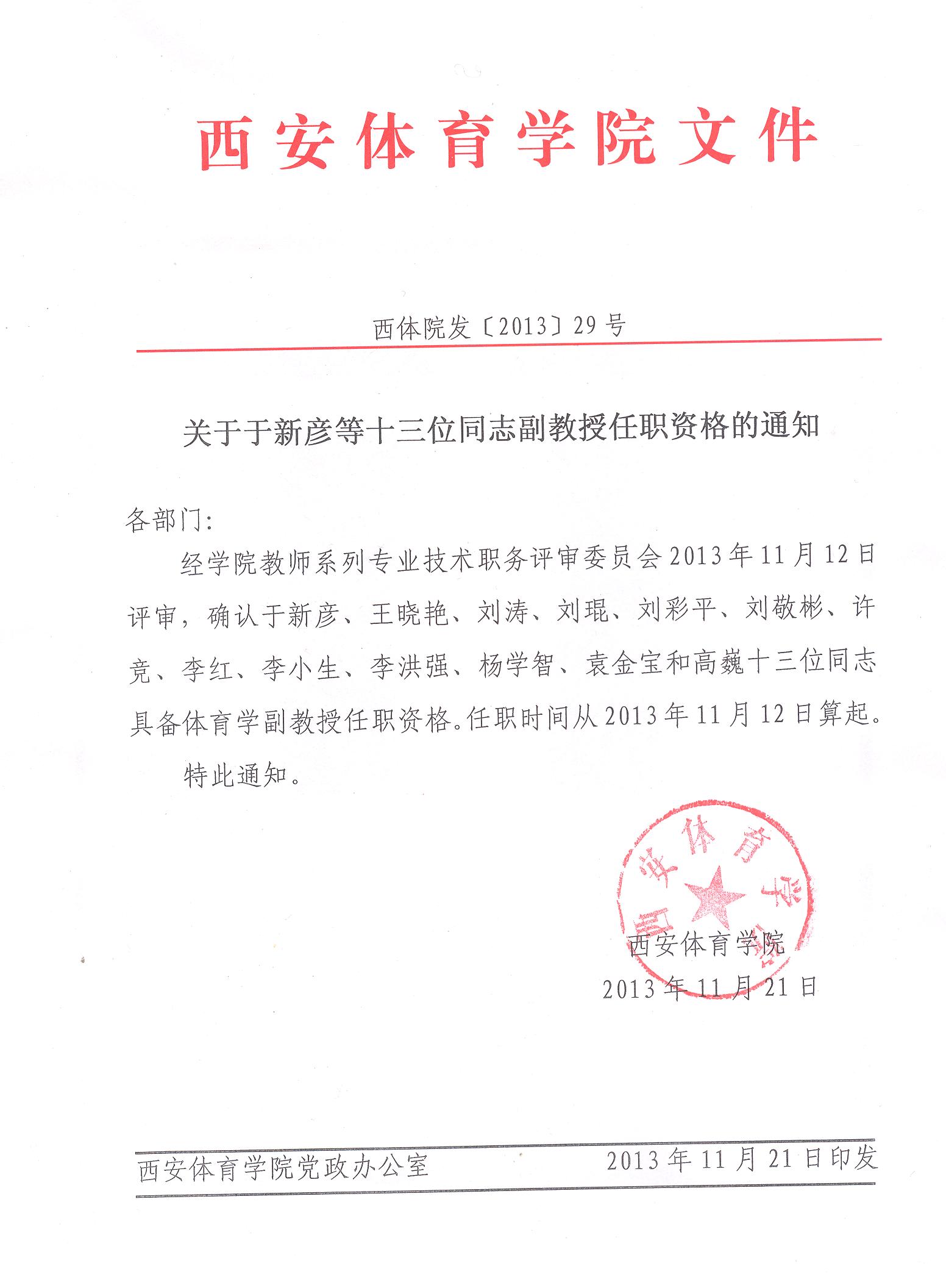 关于于新彦等十三位同志副教授任职资格的通知-久久不卡区,人事处