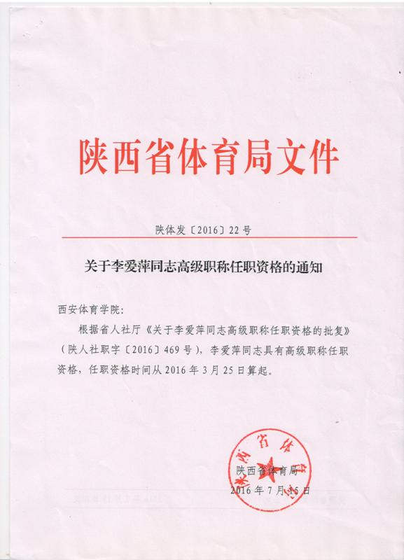 关于李爱萍同志高级职称任职资格的通知-久久不卡区,人事处